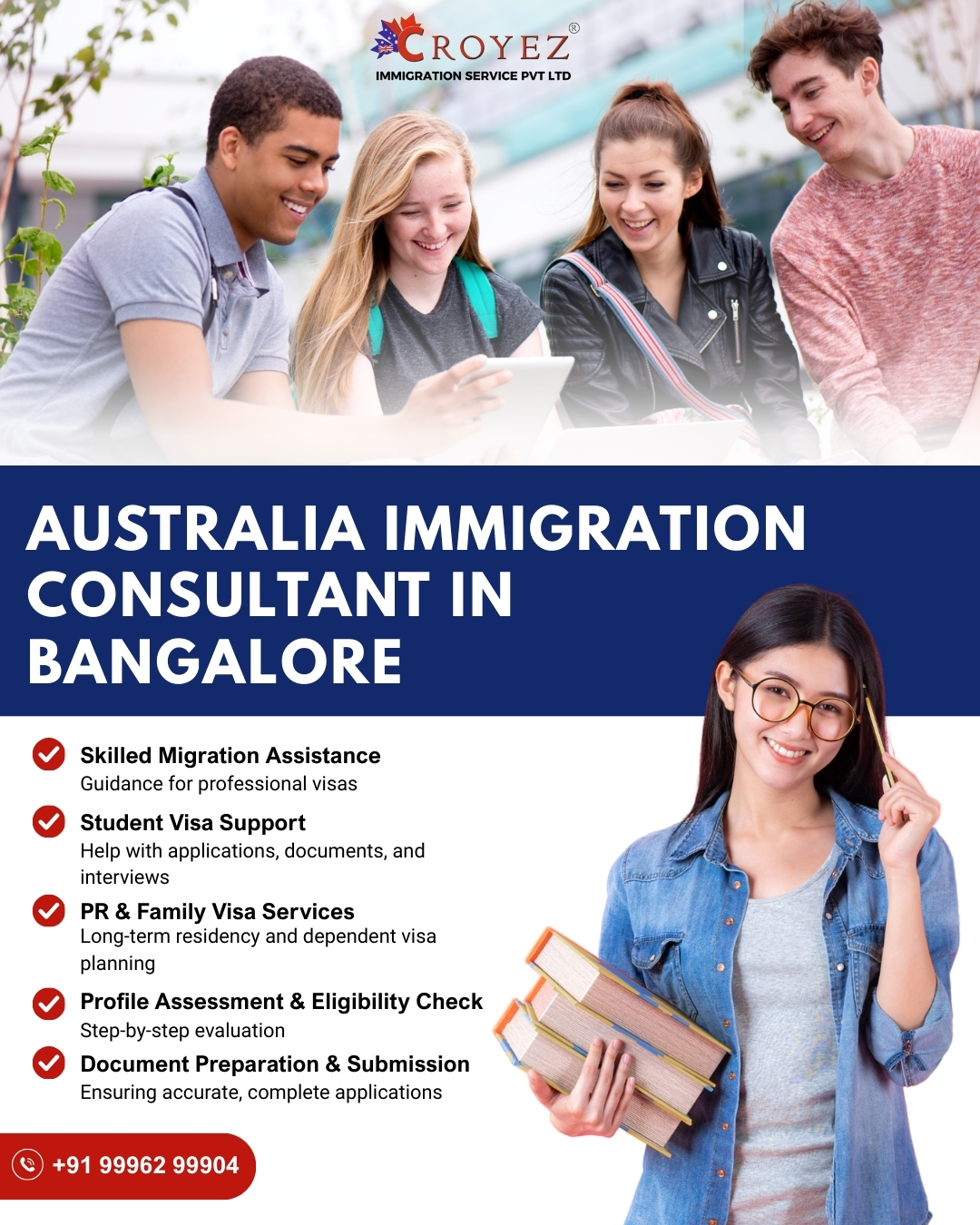 Looking to move to Australia? Croyez Immigration is a leading name among Australia Immigration Consultants in Bangalore, providing solid guidance for individuals and families planning to settle abroad. We walk you through all of the paperwork, eligibility testing, permanent residence procedures and skilled migration possibilities. After carefully examining your profile, our staff recommends the best immigration path for you based on your training and professional experience. We manage the procedure step-by-step and provide you with updates at each turn. Get in touch with us and start your trip with trusted guidance if you’re serious about creating your future in Australia.